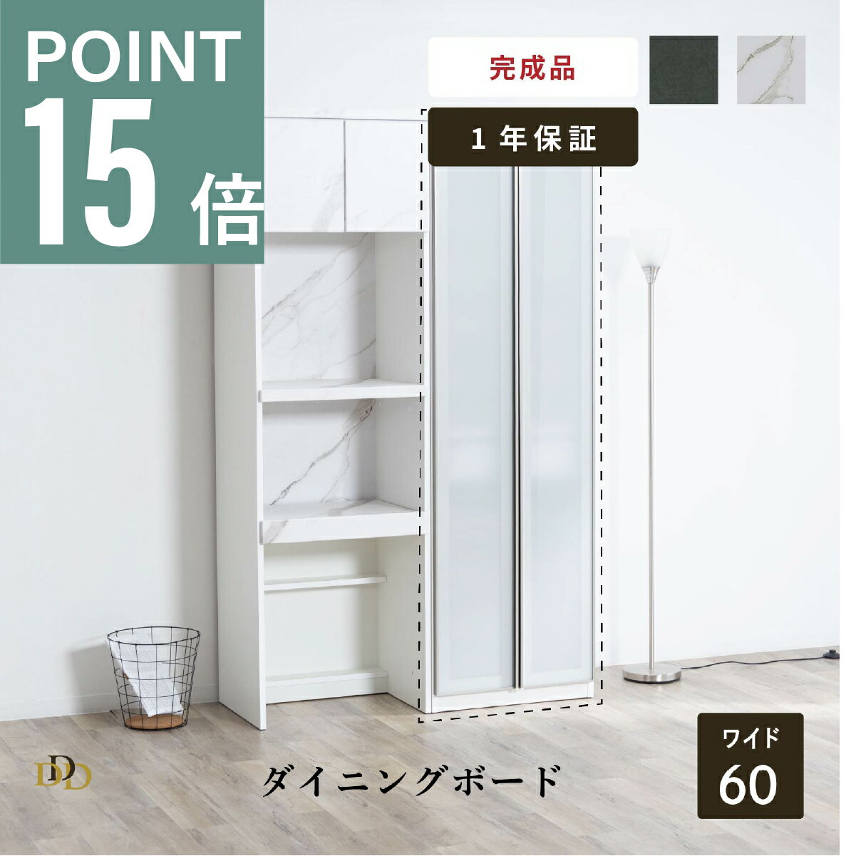 【P15倍&5%OFF】 食器棚 キッチン 収納 幅60cm 大容量 ガラス扉 カップボード キッチンボード シンプル ストッカー 食料庫 可動棚 扉付き 飛散防止 ケガ防止 スタイリッシュ ホワイト 白 ガラス扉 大理石 黒 ブラック お皿 食品 倉庫 キッチンキャビ