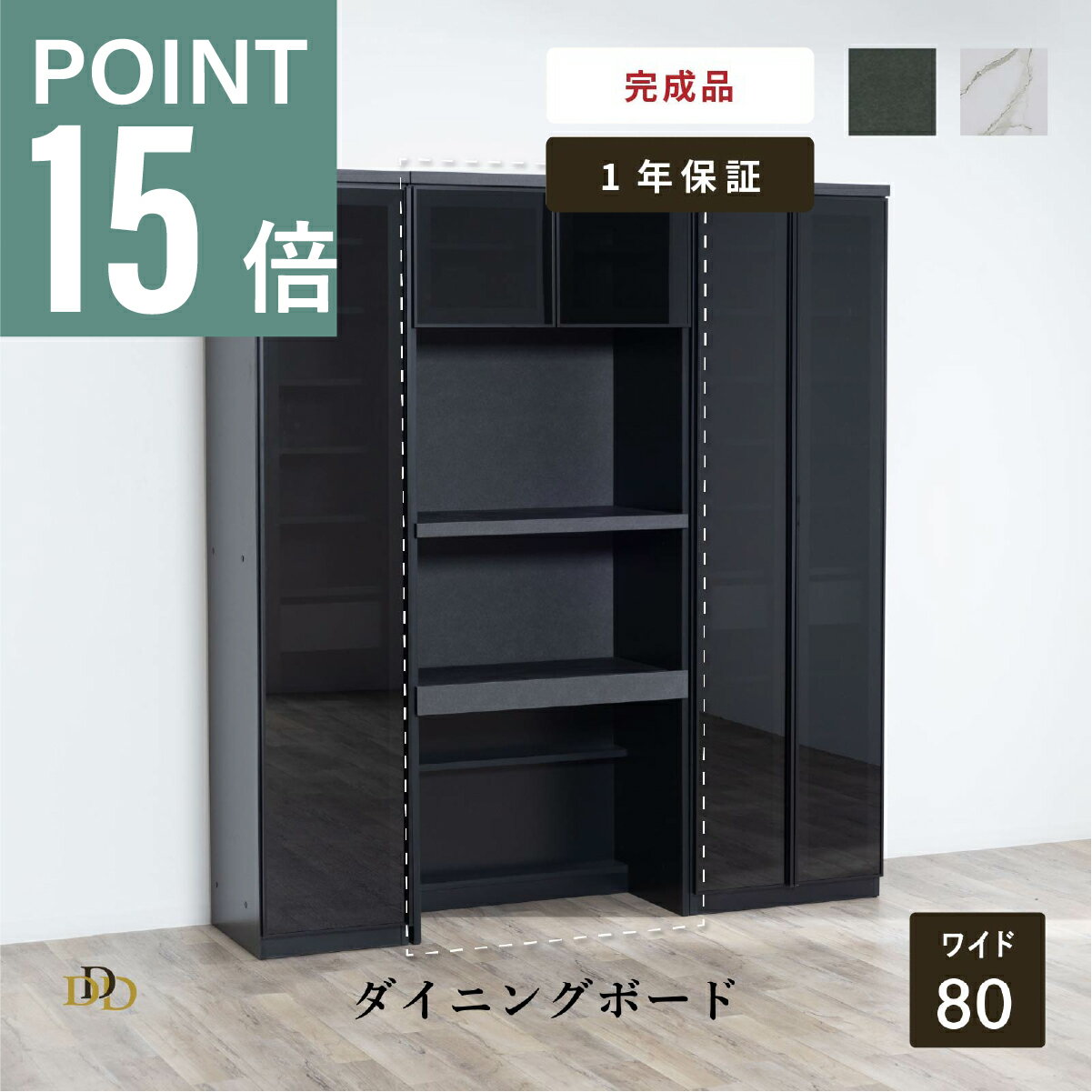 【P15倍&5%OFF】 食器棚 キッチン 収納 幅80cm 大容量 電子レンジ 収納 カップボード キッチンボード シンプル ストッカー 食料庫 可動棚 スライドカウンター ゴミ箱収納 スタイリッシュ ホワイト 白 ガラス扉 大理石調 黒 ブラック お皿 コンセント
