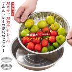 ザル ステンレス 平ザル 丸型 盆ざる 盛ざる プレート 皿 トレー付 2点セット 水切りざる お皿のざる 水切り 油切り 揚げ物 そば 食器 丸ざる