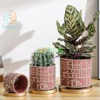 植木鉢 陶器製 プランター 底穴あり お洒落 シンプル 北欧 園芸用品 大口径 プラスチックトレイ付き ストライプ モダン 室内 ガーデン 置物 丸形 リビング盆栽