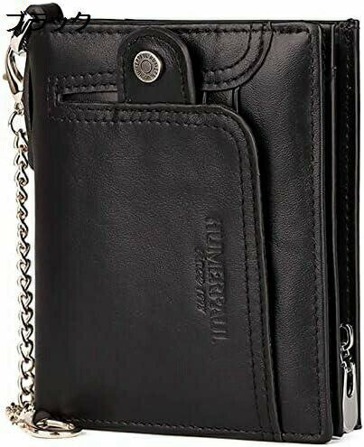 【20%OFFクーポン】財布 メンズ 二つ折り 盗難防止チェーン付き 本革 牛革 大容量 カードケース 小銭入れ カード14枚収納 二重ファスナー スキミング防止機能搭載 薄い財布 ギフト ビジネス コンパクト