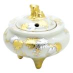 仲田錦玉 九谷焼獅子つまみ香炉 白金盛(プラチナ盛)葡萄 白粒