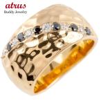 ゴールド リング メンズ ダイヤモンド ブラックダイヤモンド 幅広 指輪 槌目 槌打ち ロック仕上げ つや消し ピンクゴールドk10 ピンキーリング 送料無料 人気