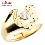 メンズ 馬蹄 ダイヤモンド イエローゴールドk18 リング 槌目 槌打ち 印台 指輪 ダイヤ 一粒 ダイヤモンドリング 18金 幅広 ストレート 男性 セール sale