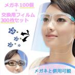 メガネ100個+交換用シールド300枚 フェイスシールド メガネ型 交換用シールド クリア 軽量 PC素材 軽量 透明シールド シールド取り換え可 防塵飛沫対策 簡単