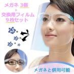 メガネ3個+交換用シールド9枚 フェイスシールド メガネ型 交換用シールド クリア 軽量 PC素材 軽量 透明シールド シールド取り換え可 防塵飛沫対策 在庫限り