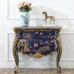 ロココ調 手描き チェスト アンティーク家具 高級収納 キャビネット ネイビー
