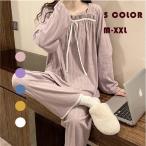パジャマ レディース ルームウェア あたたかい かわいい 長袖 着心地 長ズボン 春 秋 冬 無地 リラックス 上下セット 寝巻き ナイトウェア