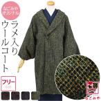 着物 コート 和装 防寒 冬用 日本製 WASOUL ラメ格子 へちま衿 コート 塵除け ヘチマ襟 洋装兼用 仕立て上がり レディース