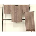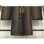 \50%OFFクーポン+P2倍/ 【中古】 リサイクル着物 身丈86.5cm 裄丈65.5cm 道行コート 正絹 袷 道行衿 塵除け 茶系 縞文様 良品 [ 着物 中古 帯 リサイクル 振袖 浴衣 袴 和服 古着 ] rr0884b