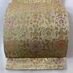 袋帯 美品 逸品 誉田屋源兵衛 落款あり 花唐草 草花 金糸 緑 六通 正絹 中古