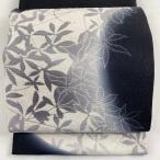袋帯 逸品 滝泰 落款あり 葉柄 銀糸 絞り 黒 お太鼓柄 正絹 中古