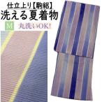 夏着物 夏物 M ストライプ柄 単衣着物 紫色 仕立上り 洗えるきもの 駒絽 絽 パープル ブルー 着物 絽小紋 紗 絽着物 合繊 小紋 レディース きもの 7月 8月 新品