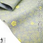 小紋 着物 リサイクル 正絹 袷 黄金糸 ライトグレー 黄色 梅 松若 上質 中古 仕立て上がり 身丈162 裄丈65.5 Mサイズ みやがわ sb16639