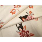 平和屋着物●小紋 草花に猫 洗える着物 未使用 AABF4216cs