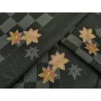 平和屋着物▽小紋 単衣 楓文 黒地 洗える着物 AABG8600ck