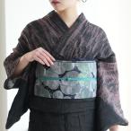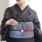 帯 半幅帯 単品 ニコアンティーク 細帯 チェックアート 着物 小紋 金襴 日本製 女性 レディース カジュアル 大人 幾何学 青 黒 カジュアル レトロ