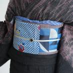 帯 半幅帯 単品 ニコアンティーク 細帯 ブルー・ジャポニズム 着物 小紋 金襴 日本製 女性 レディース カジュアル 大人 幾何学 青 黒 カジュアル レトロ