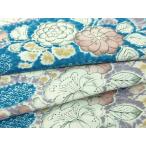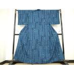 平和屋着物▽小紋 単衣 藍 更紗花文 洗える着物 AABG8603ck