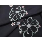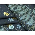 平和屋着物▽小紋 単衣 辻が花 舞花文 黒地 洗える着物 AABG7616ck