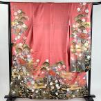 振袖 身丈168cm 裄丈68cm L 袷 花車 橋 金糸 金彩 ピンク 正絹 秀品 中古