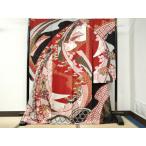 振袖 中古 黒 赤 正絹 古典 裄67.3cm 身丈172cm 美品 L サイズ 成人式 5071
