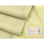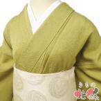 色無地 着物 中古 正絹 袷 紋付き フォーマル 地模様 植物文様 緑黄色 身丈158cm 裄65cm M きもの北條 A1309-5