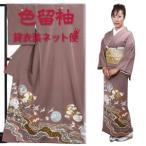 リサイクル着物 色留袖 中古 正絹 仕立て上がり 一つ紋付き 結婚式 友禅 金駒刺繍 rr1246b