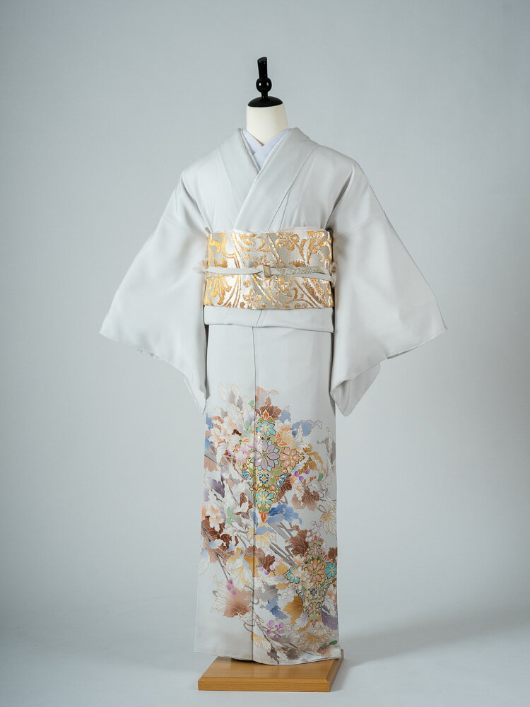 【スーパーSALE 50%OFF】 【レンタル】 色留袖レンタル 着物レンタル 留袖 I-636 京友禅 最高級 フルセット 色留袖 レンタル 結婚式 披露宴 叙勲式 レンタル 親族 列席者 おすすめ 貸衣装 正絹 姉妹 叔母 伯母 グレー チャペル 洋柄 MLサイズ