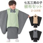 七五三 着物 男の子 3歳 2歳 被布 セット 黒 緑 ベージュ 市松 矢絣 3才 2才
