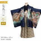 5歳 男の子 正絹 着物レンタル 小さめ 100cm〜110cm 七五三 袴レンタル d4183-3 子供着物 七草 5才 モダン 高級正絹 紺地に吉祥扇と飛翔鷹