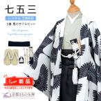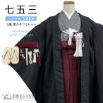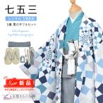 七五三 男の子 5歳 7歳 羽織袴セット 「黒・白 菱」 卒園式 入学式 端午の節句 フルセット 5才 7才 五歳 七歳 男児用 着物セット 子供着物 (メール便不可)
