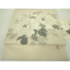 平和屋着物●塩瀬 九寸名古屋帯 作家物 手描き 牡丹 金彩 正絹 逸品 DABB7695op