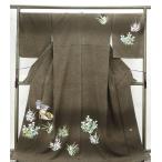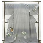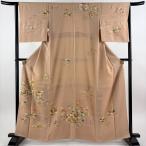 訪問着 身丈163cm 裄丈64cm M 袷 大彦 落款あり 草花 流水 刺繍 金銀糸 薄オレンジ 正絹 逸品 中古