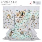 お宮参り 着物 男の子 絹 日本製 掛け着 産着 モダン 青灰 水色 小槌 軍配 宝づくし 狛犬 やっこ 玩具 松竹梅 吉祥紋 友禅 京友禅 金駒刺繍