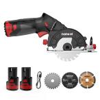 NANWEI 12V 電動丸ノコ 丸ノコ充電式 小型丸ノコ 2.0Ahバッテリー2個 USB充電 コードレス 刃径85mm 石材・木材・金属の切断