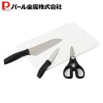 パール金属 三徳包丁 ペティナイフ キッチンバサミ まな板 4点 Aセット ペティー Cook Value F-2168