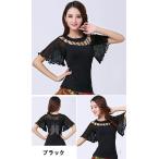 社交ダンス 衣装 トップス ラテンダンス フラメンコ ブラウス ダンス 長袖 シアートップス フラダンス レース フリル袖 ハイネック カットソー cy34n-p0
