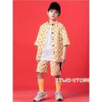キッズダンス衣装 ヒップホップ 男の子 女の子 衣装 ストリート服 半袖 セットアップ 動きやすい 単品 セットアップ イエロー ブロックチェック ショートパンツ
