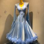 Lauretta Dancewear 社交ダンスドレス衣装 スタンダード モダン 競技ドレス 高級仕様 フェザーボンボン ライトブルー(M) ラウレッタダンスウエア ST21060
