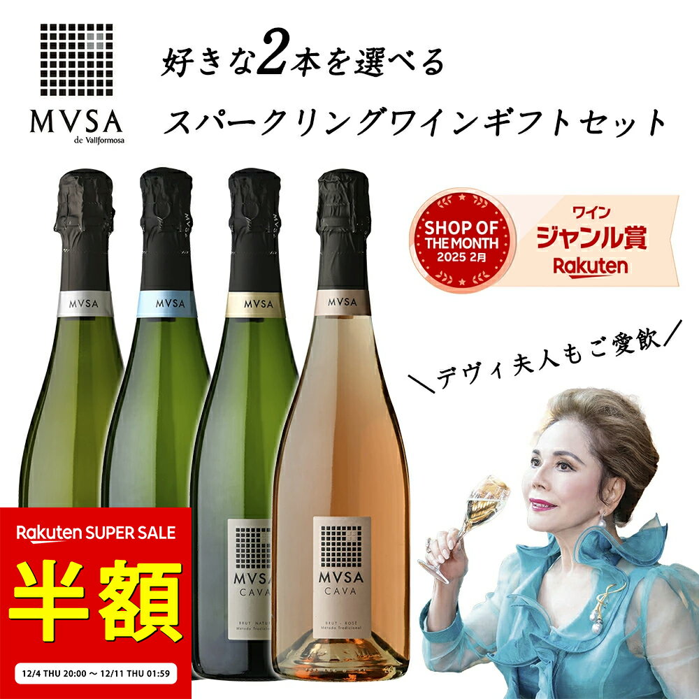 【11日 01:59まで 半額!9,000円→4,500円 在庫限り】【カヴァ ムッサ CAVA MVSA スパークリングワイン 種類を選べる2本 飲み比べ ギフトボックス入り】 スパークリング ワイン 金賞 白 泡 スペイン 神の雫 ブリュット ロゼ ギフト マルカイコーポレーション クリスマス