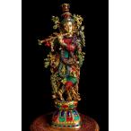 送料無料 クリシュナ クリシュナ像 神様像 ブラス (特大)緑青石装飾 ブラス製クリシュナ 高さ75cm インド