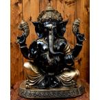 送料無料 ガネーシャ像 ブラス製 ヒンドゥー 神様像 (一点物)真鍮黒塗仕上げ ガネーシャ神像 53cm インド