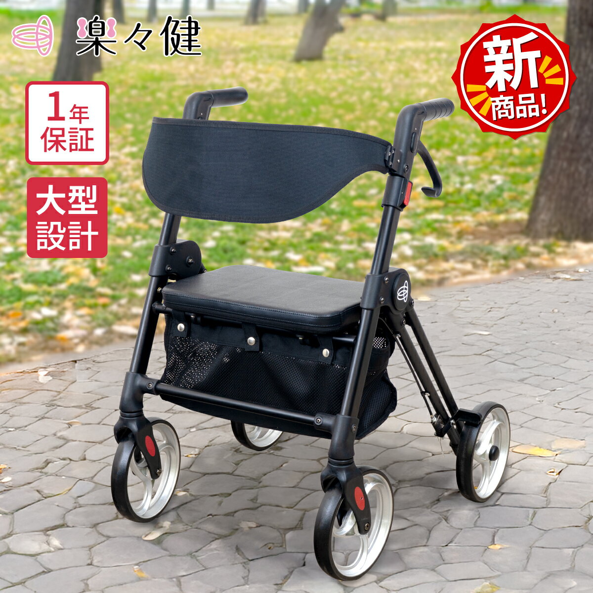 楽々健 折り畳み式 アルミ製 歩行車 福祉用具専門相談員 開発監修 高さ82/84.5/87/89.5/92cm 5段階調整 大容量バッグ付き ゆったり 耐荷重120kg ワインレッド 介護 歩行 補助 手押し車 シルバーカー 座れる 椅子 買い物 カート