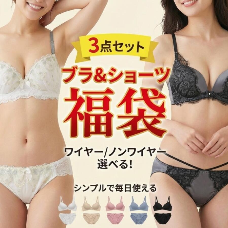 【スーパーSALE限定価格!】福袋 ブラジャー ショーツ セット 3点セット 下着 レディース 上下セット ワイヤー ノンワイヤー 選べる まとめ買い 安い プチプラ かわいい おしゃれ インナー ランジェリー A B C D E F カップ 70 75 80 85 大きいサイズ
