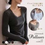 高品質 深あき 首 広い 開く Uネック リブ カットソー 柔らかインナー 長袖 天然素材 アンダーシャツ 女性 レディース アンダーウェア コットン 無地 1枚3役