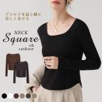 高品質 深あき 首 広い 開く スクエアネック リブ カットソー 柔らかインナー 長袖 天然素材 アンダーシャツ 女性 レディース アンダーウェア コットン 無地