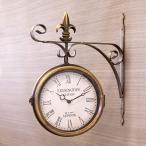 【即納】壁掛両面時計 ステーションクロック ボースサイドウォールクロック Bronze KENSINGTON ブロンズ 秋月貿易 壁掛 吊り下げ 時計 両面時計 アンティーク