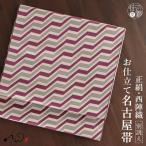 [絹100% 西陣織 名古屋帯] 正絹 れん 別誂え 名古屋帯 幾何学模様 段 (エンジ×グレー) 一重太鼓 京袋なごや帯 伝統工芸 オーダー fj512