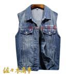 メンズ デニムベスト 春夏秋 英文字プリント ノースリーブ ジージャン Gジャン デニム ジレ チョッキ 無袖ジャケット ショート丈